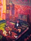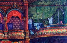 Francis Hewlett The two paintings illustrated here form part of the ´Bristol Empire Theatre´ series of works which Francis Hewlett began back in the early 1950´s when he was a young painting student at Bristol College of Art. He visited the ´Empire´ practically every night after late drawing classes and accumulated hundreds of drawings, many of them intricate and sophisticated, which at the time he felt far too immature to make into satisfactory paintings. It was not until 40 years later, on retiring from his post as Head of Painting at Falmouth College of Art, that he finally settled down to create the kind of complex and vivid pictures that he had always known the drawings contained. The resulting images are ambitious and highly complex works of art, with a stunning command of perspective and detail. A number of pastels and etchings from the ´Empire´ series will also be on sale at the exhibition. After attending Bristol College of Art, Francis continued to study painting and etching at the Ecole des Beaux Arts in Paris and at the Slade School, London. He has exhibited widely since 1958: at Falmouth Art Gallery and Newlyn Art Gallery in Cornwall, the Oriel Gallery, Cardiff, the Festival Gallery, Bath and at the Royal Academy of Arts, London. His work is held by Brows and Darby in London, and his paintings are represented in many public and private collections throughout the UK and Europe, including Bristol City Art Gallery. The National Library of Wales, Plymouth City Art Gallery, and Gregynog Hall, Wales. Francis Hewlett is an elected member of the Newlyn Society of Artists and the Royal West of England Academy and is a Gregynog Arts Fellow of the University of Wales. |