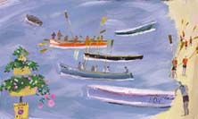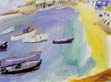 Emma Jeffryes After graduating (with an MA) from the Royal College of Art in 1994, Emma first worked as a freelance fashion textiles designer selling her designs on the US and Japanese markets. She also created, with equal success a range of furnishing fabric designs for UK, USA and major european countries. Since moving to cornwall in 1996 Emma has concentrated full time on her painting. The majority of her work is started and finished Ôon siteÕ, the paintings are vigorously executed with a spirit and vitality that is ideally suited to her preferred medium of acrylic. Her inspiration comes from the sea, the boats and the coast around her adopted cornwall. |